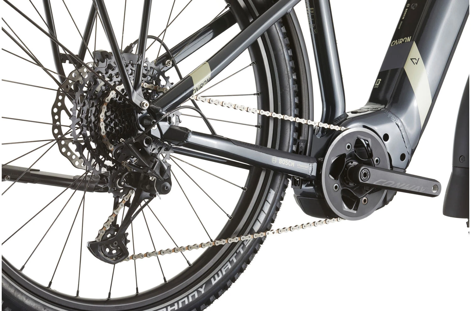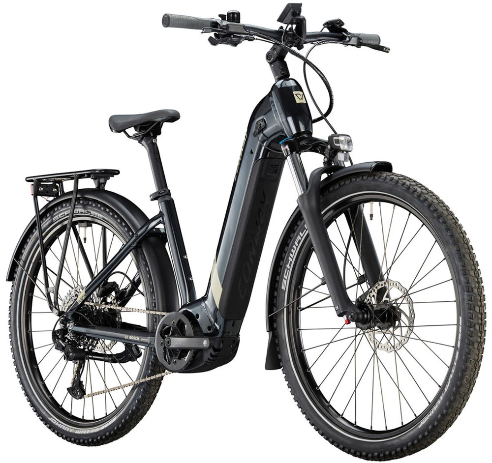 Und das mit unheimlich viel Komfort in jedem Gelände, denn das E-Bike kommt mit viel Mountainbike-DNA und hat einen sportlichen und modernen Look. Trotz des tiefen Durchstiegs hat Conway mit den Cairon 3.0 Wave einen sportliche Allrounder geschaffen, die so manch anderes Bike alt aussehen lassen! Optimiert für sicheres Fahren dort, wo die Straße aufhört dank zuverlässiger Ausstattung mit großen Bremsen und griffigen Reifen sowie idealer Geometrie für sicheres, komfortables Handling.