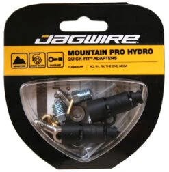 Die Quick-Fit™-Adapter ergänzen die hydraulischen Bremsleitungen der Jagwire Pro-Serie auf optimale Weise. Diese Kombination garantiert ein Maximum an Langlebigkeit, Zuverlässigkeit und Bremsperformance.