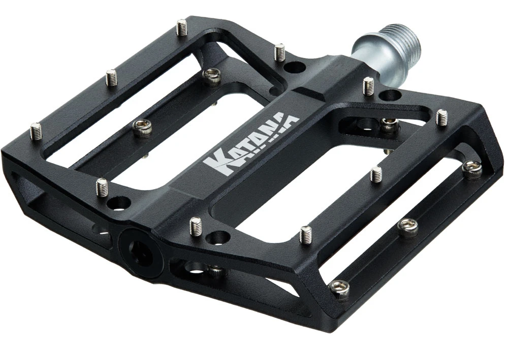 Die flachen Ground Control Plattformpedale von Katana bestehen aus einem robusten Aluminium-Korpus und sind jeweils mit 10 Pro-Pins für den nötigen Grip auf allen Trails versehen. Der Alu-Pedalkörper und die CNC-gefrästen Achsen sorgen in Verbindung mit hochwertigen Kugellagern für eine hohe Lebensdauer in jedem Einsatzbereich, selbst unter härtesten Bedingungen. Ground Control ist flach, robust und schnell!