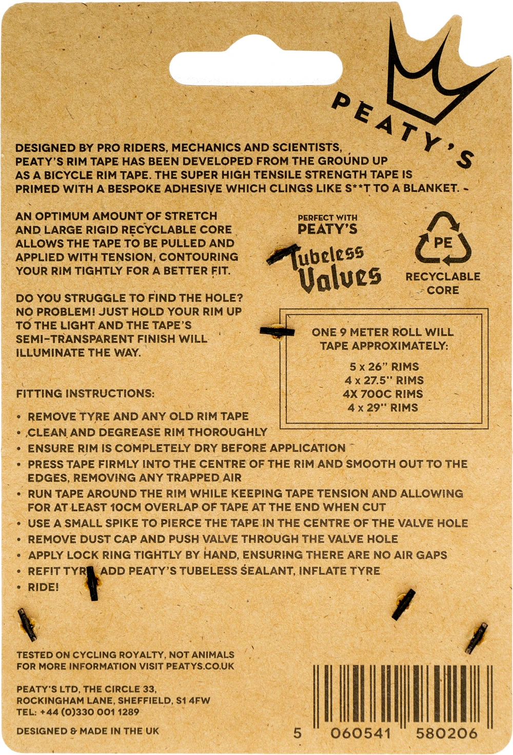 Von Profis, Mechanikern und Wissenschaftlern konzipiert, wurde Peaty‘s Rim Tape von Grund auf als Fahrrad-Felgenband entwickelt. Das hochfeste Klebeband ist mit einem Spezialkleber grundiert, der extrem haftet.