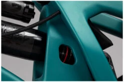 Im Hauptrahmen gibt es weiterhin genug Platz für deine Trinkflasche, die direkt auf der Verschlusskappe der Glovebox angebracht werden kann. Die ausgefeilte Kabelführung garantiert eine bessere Schalt-Performance sowie die gewohnt einfache Zugverlegung und vermeidet Kabelabrieb. Außerdem gibt es einen Shuttle-Schutz und einen Schlagschutz am Unterrohr, sowie ein kleines Schutzblech überm Dämpfer und einen Kettenstrebenschutz, der die Dinge angenehm ruhig hält.