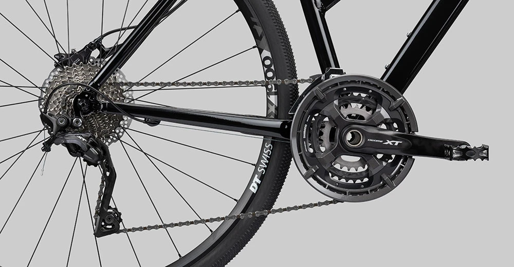 Die ausgezeichnete RockShox Paragon Gold an der Front gehört zu den besten Cross-Luftfedergabeln und atmet Unebenheiten und Schläge einfach so weg. Mit Shimano XT Komponenten macht man immer alles richtig, deshalb haben wir dem Rad gleich den kompletten Antrieb mit Kurbel, Umwerfer und Schaltwerk plus hydraulische XT BR-M8100 Bremse spendiert. Auf diese Gruppe kann man sich sowohl beim Beschleunigen als auch beim Abbremsen immer verlassen. Zusammen mit dem sportlichen Selle Italia X3 Sattel und den leicht rollenden Schwalbe G-One Pneus wird jede Ausfahrt zu einem sorgenfreien Genuss.