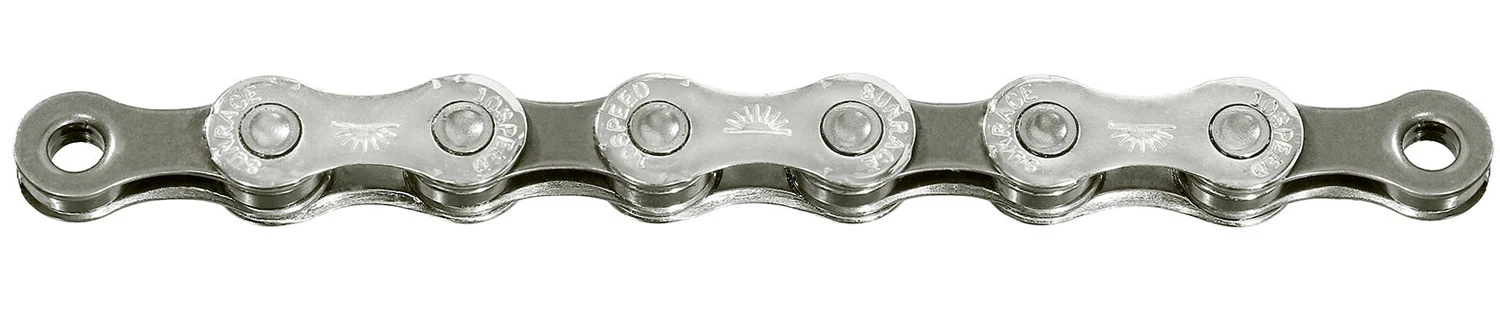 Die haltbare SunRace CN10A 10-fach Kette mit 116 Gliedern für Sram/Shimano 10-fach Schaltsysteme. Inkl. Easy Link Kettenschloss.