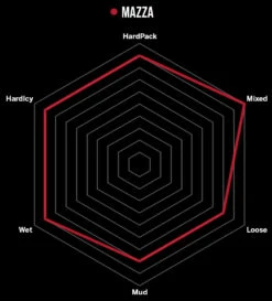 Ausgehend von einem ausgeprägten Mittelprofil verwendet der Mazza MTB-Reifen tiefe Lamellen in Laufrichtung, die es dem Reifen ermöglichen, schnell zu rollen und insbesondere im Gelände guten Grip zu bieten. Die abgestufte Vorderkante rollt ausgesprochen smooth, greift aber bei Steigungen tief in den Untergrund, was den Mazza zur exzellenten Wahl sowohl für den Einsatz am Vorderrad wie auch am Hinterrad des Mountainbikes macht. In der Laufflächenmitte wurde viel Platz gelassen, um eine gute Traktion zu gewährleisten und gleichzeitig die Reinigung zu erleichtern. Der Mazza ist mit den für Vittoria typischen ansteigend breiten Lamellen ausgestattet. Dieses einzigartige Lamellenmuster erzeugt einen asymmetrischen Laufflächen-Flex und führt zu einem berechenbaren, selbstsicheren und reaktiven Fahrgefühl. Die großzügige Profiltiefe des Mazza ist ideal zur Beherrschung diverser Untergründe, ein Effekt, der durch das von Vittoria entwickelte 4C-Compound-Layering gestützt wird. Vier separate Graphene 2.0-Mischungen wurden so geschichtet, dass die Oberfläche der Lauffläche eine gute Haftung bietet. Dadurch wird sichergestellt, dass selbst bei hoher Belastung alles an seinem Platz bleibt, ob in anspruchsvollen Kurven oder beim beherzten Bremsen.